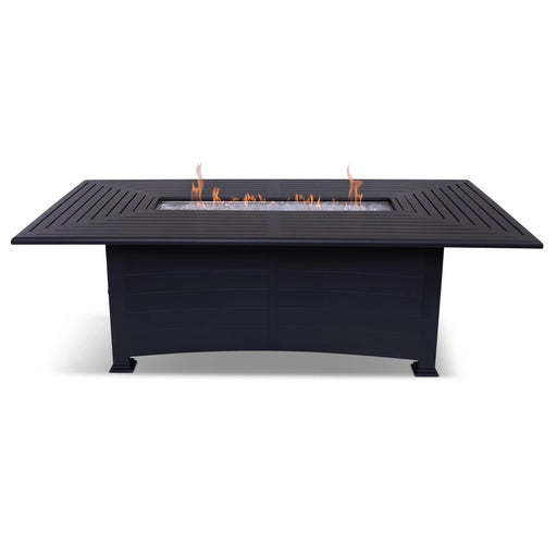 This 36" x 58" black modern fire table combines sleek design with practical functionality. Crafted for outdoor use, it features a durable black fin...