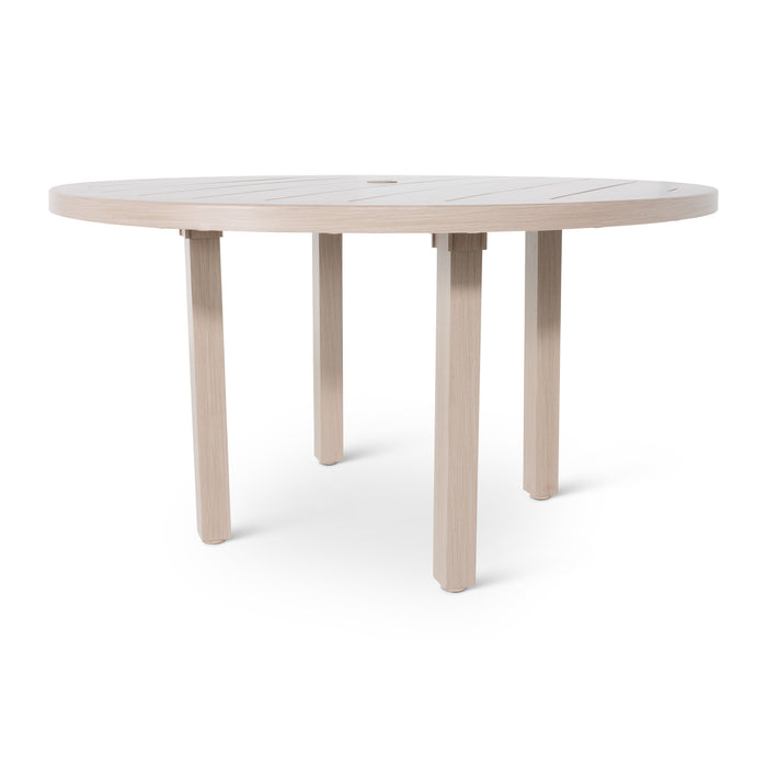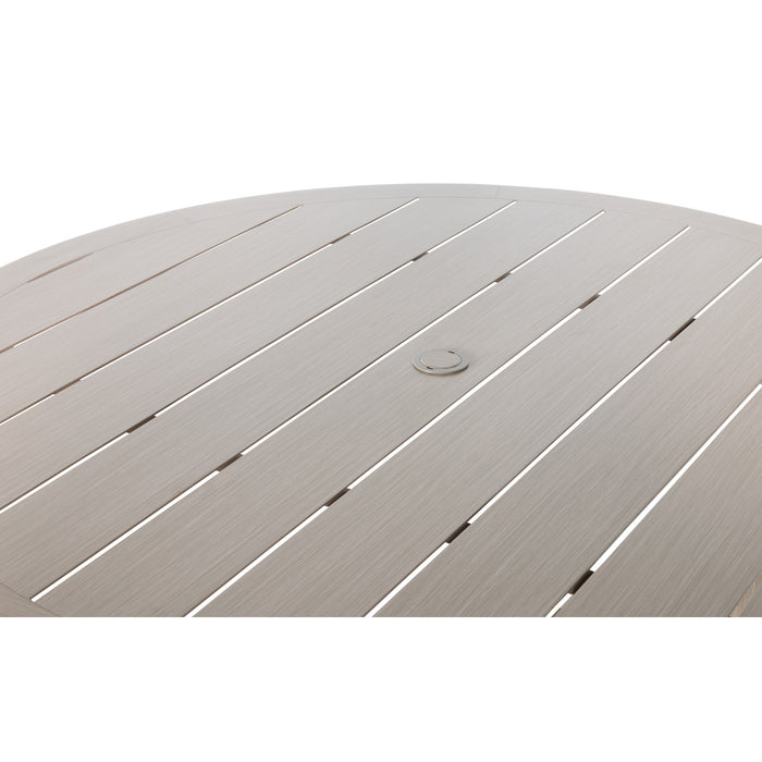Upgrade your dining experience with the Addison 5 Piece Dining Group. Featuring a sturdy driftwood frame and luxurious Hemingway Papyrus fabric, this set includes two cushioned XL slat back dining chairs, two cushioned XL slat back swivel rockers, and a 54" round modern slat post leg dining table. Enjoy elegant comfort and style with this sophisticated set.