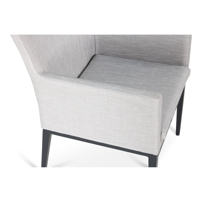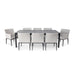 The Mila 9 Piece Upholstered Dining Group is the perfect modern addition to any patio. Made with a Matte Black aluminum frame and Grey upholstered sling fabric, the set includes eight comfortable dining chairs and a versatile 40" x 86"-113" rectangle aluminum table with a double butterfly extension. The extension table allows for up to twelve seats. Perfect for hosting large gatherings and enjoying meals under the sun.