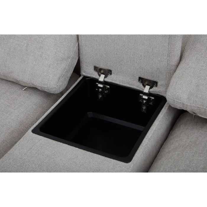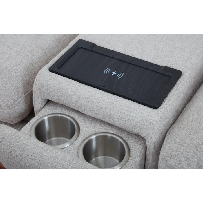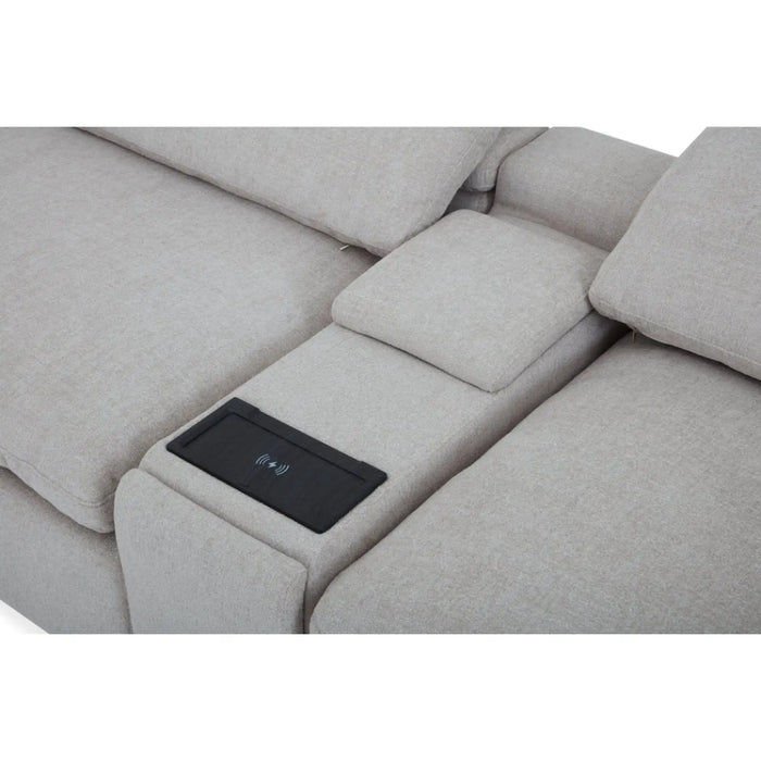 Experience ultimate comfort with the Rowan Cloud Motion Sectional. This 6 piece sectional group features high performance fabric in Magnolia Sand, dual power headrest and power recliners, and a power console. With a total size of 134"W x 146"D x 42"H, this sectional includes a LAF dual power recliner, RAF dual power recliner, armless dual power recliner, armless chair section, corner wedge, and power console. Relax and unwind in style with this luxurious and functional sectional.