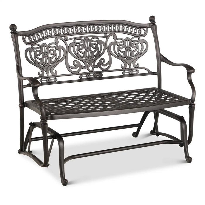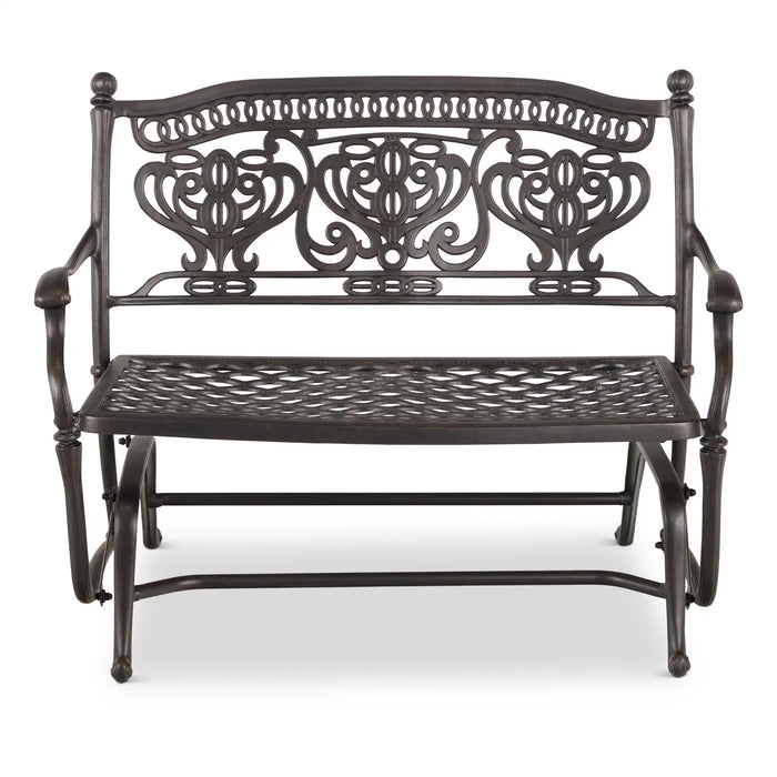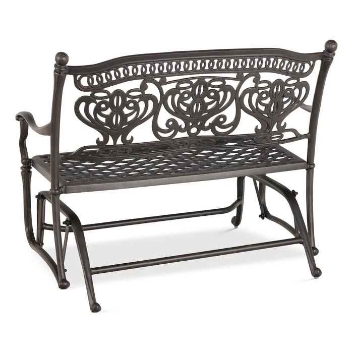 Experience the ultimate relaxation in our Turin Double Glider. Made with durable aluminum, this glider is perfect for any garden, porch, or patio. Enjoy the warm Desert Bronze finish as you glide in comfort. Upgrade your outdoor space today!